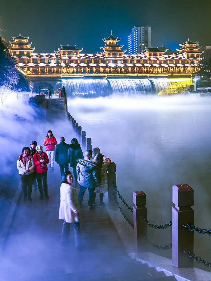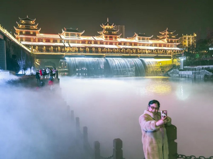 湖北恩施市清江流域上演了一場美輪美奐的視聽盛宴,