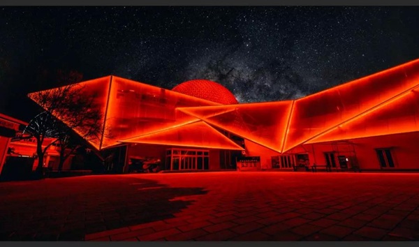 在光色的設(shè)計中,信達(dá)電通采用皓白、暖黃、科技藍(lán)等多種顏色漸變切換的設(shè)計手法。燈光重點勾繪外圍建筑輪廓,突出建筑的獨特結(jié)構(gòu),與球幕影院和廣場地面的投影形成互補(bǔ)和諧的夜景畫面。