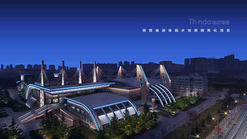 陜西省游泳跳水館是信達(dá)在西安高新區(qū)規(guī)劃項(xiàng)目中的一環(huán),游泳館外觀狀似揚(yáng)帆遠(yuǎn)洋的旗艦,其建筑結(jié)構(gòu)、配套設(shè)施等都屬國(guó)內(nèi)先進(jìn)。信達(dá)依據(jù)建筑本身特性對(duì)建筑的輪廓和頂部進(jìn)行重點(diǎn)照明,突出建筑結(jié)構(gòu)。燈光采用冷暖色調(diào)結(jié)合的方式,依照西安高新區(qū)整體的照明規(guī)劃,加強(qiáng)與周邊建筑的銜接與互動(dòng)。